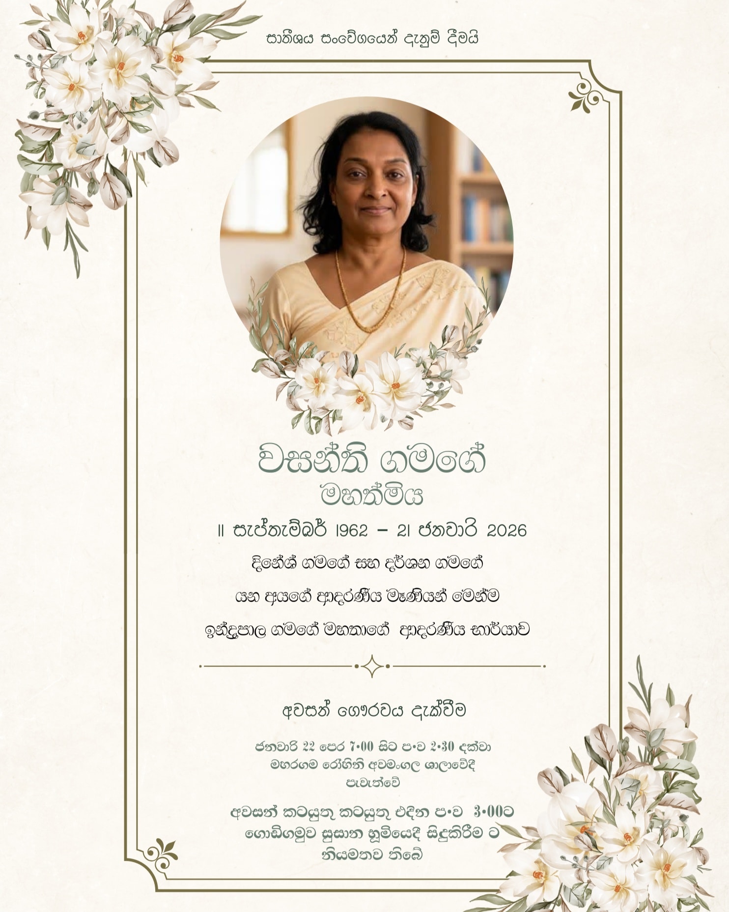 දිනේෂ් ගමගේ කියූ සැනින් ලංකාවේ සෑම අස්සක් මුල්ලක් නෑරම ඔහුව නොහඳුනන කෙනෙක් නැති තරම්.. දිනේෂ්ගේ ආදරණීය මෑණියන් වන වසන්ති ගමගේ මහත්මිය ඊයේ සිය ජීවන ගමනට සමුදුන්නා.