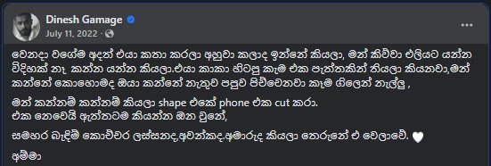 මේ සංවේදී පුවතත් සමගම ඔහු කලකට ඉහතදී මුහුණුපොතට එක්කළ සටහනක් මෙන්න මේ වගේ දැකගන්න ලැබුණා. ඒ තමන්ගේ ආදරණීය අම්මා ගැනයි.